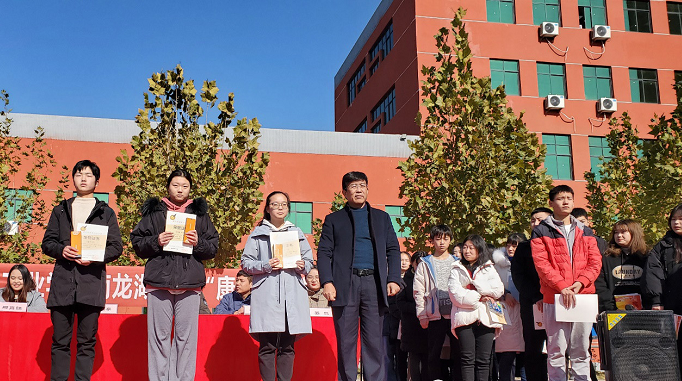 25号中午,颁奖典礼在我校南龙湖校区操场隆重举行,校长李书亭、教学部主任邢育红、学工部主任孙永飞、团委苏淼、教学部副主任朱广源参与了此次颁奖典礼。李校长致辞后,颁奖典礼正式开始,在欢快的《颁奖进行曲》中,主持人邀请了李聪聪老师、刘璐老师、孙民浩老师、邢育红老师宣读获奖同学的名单,并由校领导和老师为他们颁发了证书以及奖品。