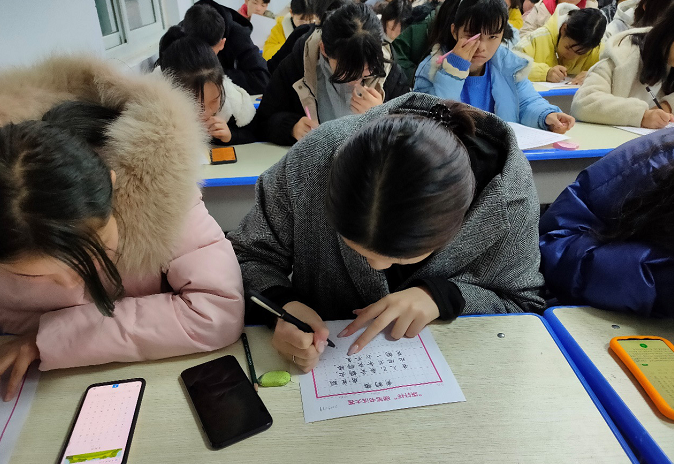 参加复赛的同学们认真的进行书写,他们一笔一画的书写着象征中华文明的汉字。
